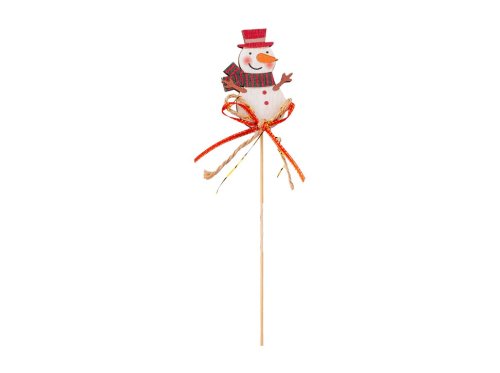Zápich dřevo 12ks 55x75mm + špejle sněhulák, Santa v dřevěné ohrádce mix, červená, bílá