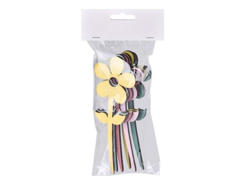 Zápich dřevo 6ks 55x150 mm květina, barevná s lepítkem