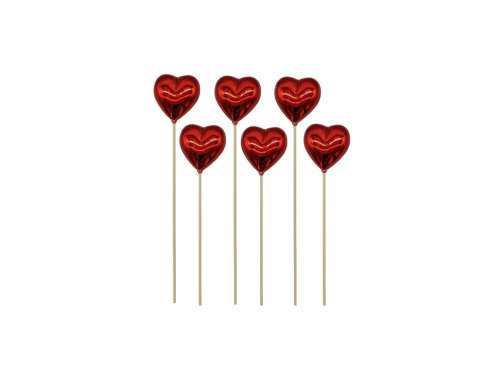 Zápich dřevo 6ks 65mm+špejle srdíčko, červená