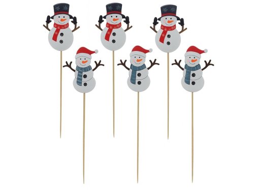 Zápich dřevo 75x70mm + špejle sněhulák, bílá, červená, černá