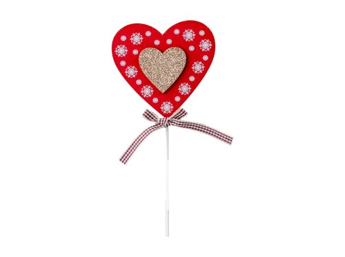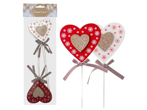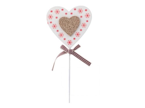 Zápich dřevo 80x80mm + špejle srdíčko s glitrem mix, červená, bílá