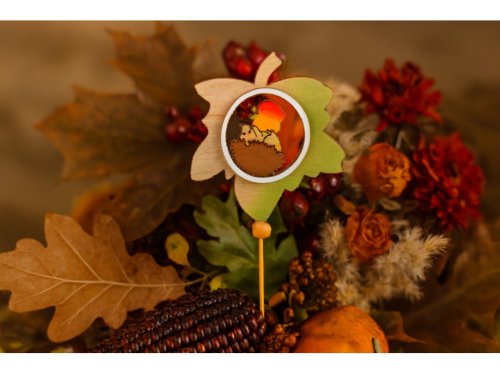 Zápich dřevo 85x90mm+špejle list s ježkem, barevná
