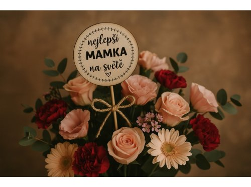 Dřevěný zápich do květináče nebo k bylinkám s potiskem pro maminku – Nejlepší mamka na světě. Průměr kolečka je 5 – 8 cm, výška zapichovátka je přibližně 30 cm. Krásná dekorace pro bylinkovou zahrádku.