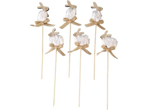 Zápich dřevo, plst 6ks 60x55mm zajíček+špejle, přírodní, bílá