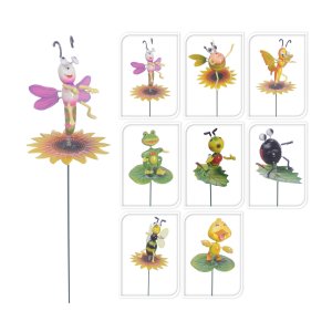 velikost zvířátka: 12,5 cm velikost tyčky: 59,5 cm materiál: kov mix druhů: včela, mravenec, motýl, žába, pták, beruška, vážka, káčátko