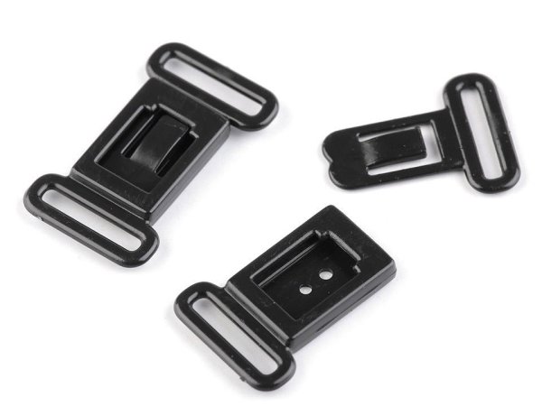Malé plastové zapínání je složeno ze dvou částí. Využijete ho jako zapínání na motýlka nebo kravatu. [Je vhodné také na kojící podprsenky.] Posunovač není součástí balení, ale najdete ho pod kódem 830435.