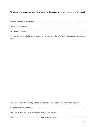 Zápisník bezpečnosti práce A5 OP 1221. Nepropisující tiskopis, blok 20 listů, formát A5. Červená obálka. Nečíslovaný.