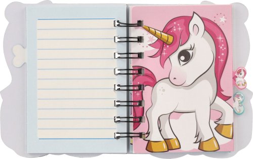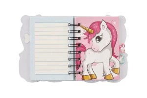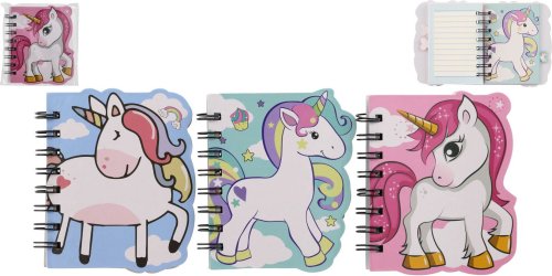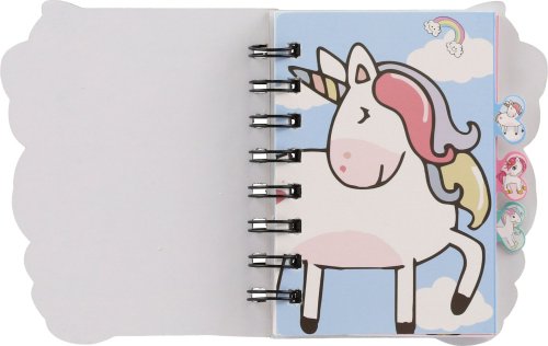 Kroužkový zápisník s motivy jednorožce. Mini trhací sešítek na nejdůležitější poznámky a kresby Vašich nejmenších. Velká výhoda je, že zápisník můžete vzít všude s sebou a nezabere moc místa! Obsahuje cca 60 linkovaných listů. Bez tužky. Rozměr zapisníku: 11 x 12,5 cm. Není hračka.