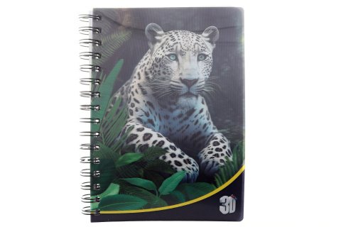 Zápisník s 3D efektem s motivem Levharta. V zápisníku je celkem 100 listů, z nichž je 50 linkovaných a 50 nelinkovaných. Formát A5. Výrobek není hračka.