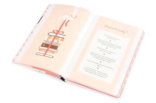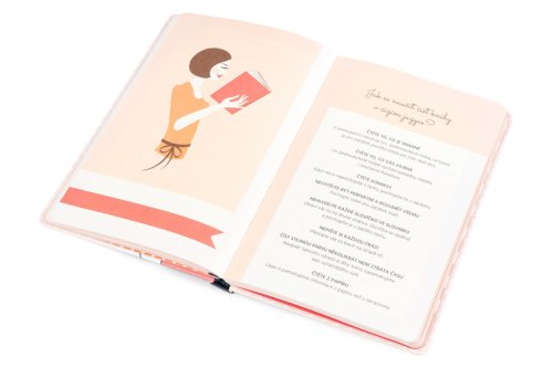 Moderní čtenářský deník, do kterého si zapíšete přečtené knihy, obsahuje zároveň tipy pro vášnivé čtenářky, které nikdy nemají čtení dost.