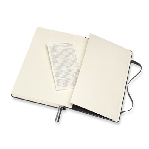 Zápisník s větším počtem stran má pevnou, ve hřbetu šitou vazbu v kartonových deskách. Obepíná ho pružná páska proti samovolnému otevírání. Každý zápisník je dále vybaven pořadačem poznámek, který je vyroben z tkaniny a kartonu, textilní záložkou a letákem s historií Moleskine. Papír s gramáží 70 g/m2 neobsahuje kyseliny.