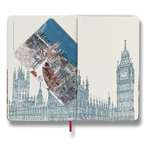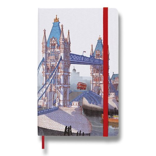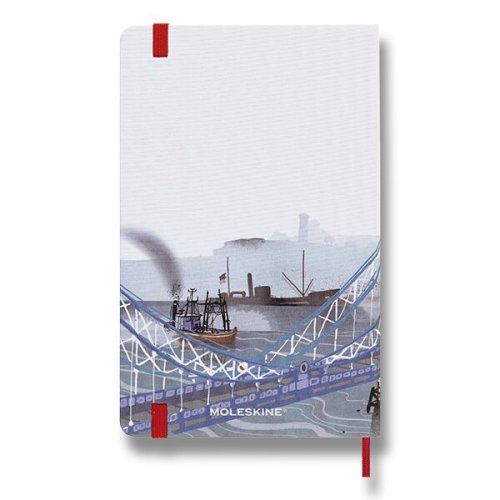 Pevná, ve hřbetu šitá vazba v kartonových deskách obepnutých pružnou páskou proti samovolnému otevírání. Titulní strana s Tower Bridge a na zadní straně dvoupatrový autobus,, neodmyslitelná součást Londýna. Zápisník obsahuje také pohlednici s motivem volá Londýn. Zápisník je vybaven kapsou na vizitky a drobnosti, která je vyrobena z tkaniny a kartonu,, textilní záložkou a letákem s historií MOLESKINE. Gramáž papíru 100 g/m², neobsahuje kyseliny., Rozměry 13 x 21 cm, 120 listů, linkovaný., VELIKOSTI TEMATICKÝCH ZÁPISNÍKŮ:, * S - 9 x 14 cm (A6), * L - 13 x 21 cm (A5), Příběh značky MOLESKINE se začal psát již v 19. století ve Francii, kdy vznikl produkt s velkou tradicí. Zápisníky MOLESKINE si oblíbili významní umělci a myslitelé jako Vincent van, Gogh, Pablo Picasso či Ernest Hemingway. Dnes je značka Moleskine synonymem pro kulturu, cestování, kreativitu a osobní identitu, a to jak v reálném světě, tak i ve světě digitálním., MOLESKINE je kreativním a nápaditým partnerem pro dnešní dobu.,