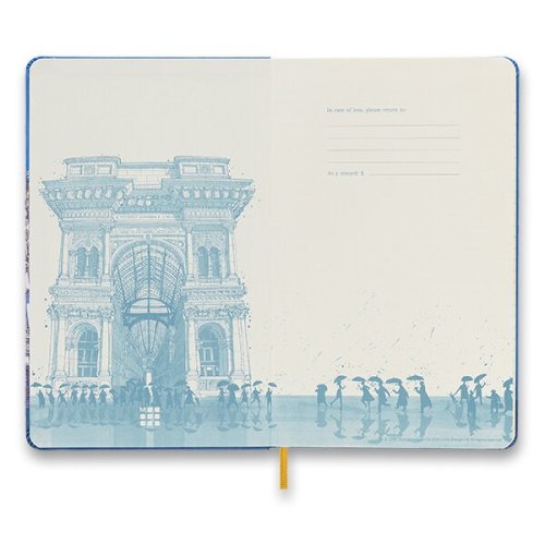 Pevná, ve hřbetu šitá vazba v kartonových deskách obepnutých pružnou páskou proti samovolnému otevírání. Titulní strana s impozantní budovou galerie Vittorio Emanuele II. Zápisník je, vybaven kapsou na vizitky a drobnosti, která je vyrobena z tkaniny a kartonu, textilní záložkou a letákem s historií MOLESKINE. Gramáž papíru 100 g/m², neobsahuje kyseliny., Rozměry 13 x 21 cm, 120 listů, linkovaný., VELIKOSTI TEMATICKÝCH ZÁPISNÍKŮ:, * S - 9 x 14 cm (A6), * L - 13 x 21 cm (A5), Příběh značky MOLESKINE se začal psát již v 19. století ve Francii, kdy vznikl produkt s velkou tradicí. Zápisníky MOLESKINE si oblíbili významní umělci a myslitelé jako Vincent van, Gogh, Pablo Picasso či Ernest Hemingway. Dnes je značka Moleskine synonymem pro kulturu, cestování, kreativitu a osobní identitu, a to jak v reálném světě, tak i ve světě digitálním., MOLESKINE je kreativním a nápaditým partnerem pro dnešní dobu.