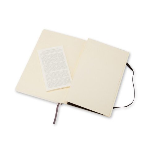 Zápisník s měkkou, ve hřbetu šitou vazbou v kartonových deskách, obepnutý pružnou páskou proti samovolnému otevírání. Zápisník je vybaven pořadačem poznámek, který je vyroben z tkaniny a kartonu, textilní záložkou a letákem s historií MOLESKINE. Gramáž papíru 70 g/m2, neobsahuje kyseliny. Rozměr: 13 x 21 cm, 96 listů, čistý