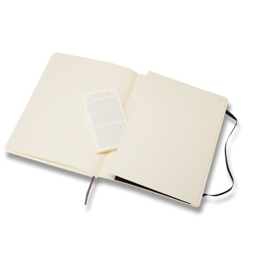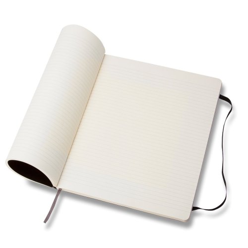 Zápisník s měkkou, ve hřbetu šitou vazbou v kartonových deskách, obepnutý pružnou páskou proti samovolnému otevírání. Zápisník je vybaven pořadačem poznámek, který je vyroben z tkaniny a kartonu, textilní záložkou a letákem s historií MOLESKINE. Gramáž papíru 70 g/m2, neobsahuje kyseliny.Rozměr: 19 x 25 cm, 96 listů, linkovaný