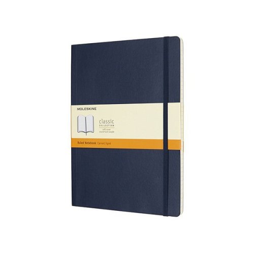 Zápisník s měkkou, ve hřbetu šitou vazbou v kartonových deskách, obepnutý pružnou páskou proti samovolnému otevírání. Zápisník je vybaven pořadačem poznámek, který je vyroben z tkaniny a kartonu, textilní záložkou a letákem s historií MOLESKINE. Gramáž papíru 70 g/m2, neobsahuje kyseliny.Rozměr: 19 x 25 cm, 96 listů, linkovaný