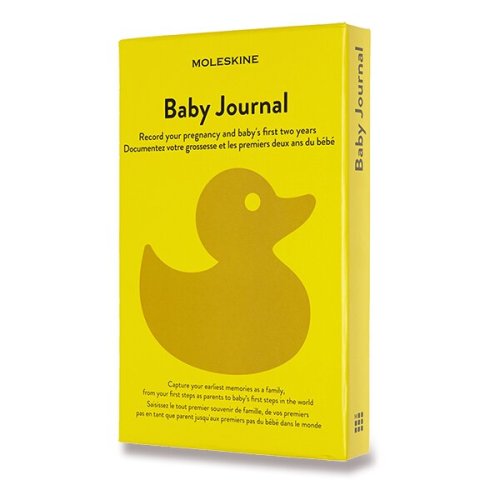 Zápisník s pevnou, ve hřbetu šitou vazbou v kartonových deskách s reliéfním zdobením. Obepíná ho pružná páska proti samovolnému otevírání. Zápisník je vybaven 2 textilními, záložkami, dvojitou vnitřní kapsou, barevnými samolepkami a letákem s historií MOLESKINE. Zápisník je rozdělen do 6 tématických sekcí se specifickým rozvržením stran (9 měsíců do, porodu, příchod dítěte na svět, momenty které si chcete pamatovat navždy, zdraví a krmení, poznámky, adresář), obsahuje stránky s diagramem růstu dítěte i prázdné strany., Gramáž papíru 70 g/m2, neobsahuje kyseliny. , ROZMĚR: 13 X 21 CM, 200 LISTŮ, Zápisník je v anglickém jazyce., O ZNAČCE MOLESKINE:, Příběh značky MOLESKINE se začal psát již v 19. století ve Francii, kdy vznikl produkt s velkou tradicí. Zápisníky MOLESKINE si oblíbili významní umělci a myslitelé jako Vincent van, Gogh, Pablo Picasso či Ernest Hemingway. Dnes je značka Moleskine synonymem pro kulturu, cestování, kreativitu a osobní identitu, a to jak v reálném světě, tak i ve světě digitálním., MOLESKINE je kreativním a nápaditým partnerem pro dnešní dobu >>