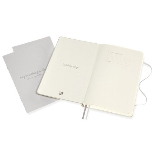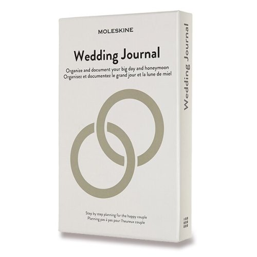 Zápisník s pevnou, ve hřbetu šitou vazbou v kartonových deskách s reliéfním zdobením. Obepíná ho pružná páska proti samovolnému otevírání. Zápisník je vybaven 2 textilními, záložkami, dvojitou vnitřní kapsou, barevnými samolepkami a letákem s historií MOLESKINE. Zápisník je rozdělen do 10 tématických sekcí se specifickým rozvržením stran (inspirace a, nápady, rozpočet, hosté, obřad, svatební hostina, květiny a dekorace, fotografie, video a hudba, svatební cesta, poznámky, adresář), obsahuje 2 samostatné zápisníky pro nevěstu,, předsvatební 12-ti měsíční odpočet před svatbou i prázdné strany., Gramáž papíru 70 g/m2, neobsahuje kyseliny. , ROZMĚR: 13 X 21 CM, 188 LISTŮ + 2 PŘÍRUČKY, Zápisník je v anglickém jazyce., O ZNAČCE MOLESKINE:, Příběh značky MOLESKINE se začal psát již v 19. století ve Francii, kdy vznikl produkt s velkou tradicí. Zápisníky MOLESKINE si oblíbili významní umělci a myslitelé jako Vincent van, Gogh, Pablo Picasso či Ernest Hemingway. Dnes je značka Moleskine synonymem pro kulturu, cestování, kreativitu a osobní identitu, a to jak v reálném světě, tak i ve světě digitálním., MOLESKINE je kreativním a nápaditým partnerem pro dnešní dobu >>