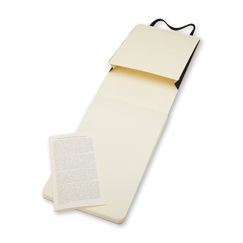 Zápisník s měkkou, v horním hřbetu šitou vazbou v kartonových deskách, obepnutý pružnou páskou proti samovolnému otevírání. Zápisník je vybaven pořadačem poznámek, který je vyroben z tkaniny a kartonu, a letákem s historií MOLESKINE. Gramáž papíru 70 g/m2, neobsahuje kyseliny. Posledních 12 listů je možno díky perforaci snadno vytrhnout. Rozměry: 9 x 14 cm, 96 listů, linkovaný.
