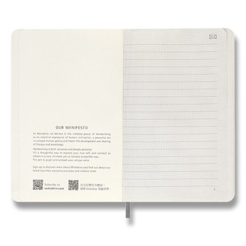 Díky neviditelným N-kódům, které se nachází na každé stránce, vaše pero dokáže určit přesné umístění vašich poznámek v zápisníku. V digitální podobě je možné text editovat,, barevně zvýrazňovat nebo sdílet s ostatními., * gramáž 100 g/m², * neobsahuje kyseliny, * 72 listů, Rozměr: 9 × 14 cm, O ZNAČCE MOLESKINE:, Příběh značky MOLESKINE se začal psát již v 19. století ve Francii, kdy vznikl produkt s velkou tradicí. Zápisníky MOLESKINE si oblíbili významní umělci a myslitelé jako Vincent van, Gogh, Pablo Picasso či Ernest Hemingway. Dnes je značka Moleskine synonymem pro kulturu, cestování, kreativitu a osobní identitu, a to jak v reálném světě, tak i ve světě digitálním., MOLESKINE je kreativním a nápaditým partnerem pro dnešní dobu >>,