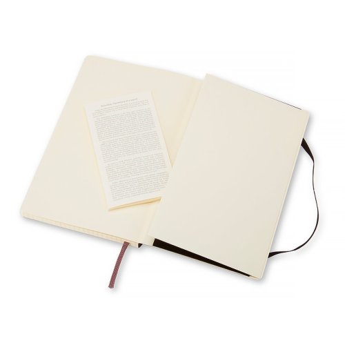 Zápisník s měkkou, ve hřbetu šitou vazbou v kartonových deskách, obepnutý pružnou páskou proti samovolnému otevírání. Zápisník je vybaven pořadačem poznámek, který je vyroben z tkaniny a kartonu, textilní záložkou a letákem s historií Moleskine. Gramáž papíru 70 g/m2, neobsahuje kyseliny. Rozměr: 13 x 21 cm, 96 listů, čtverečkovaný