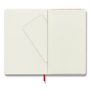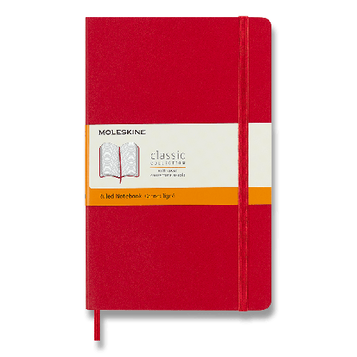 Zápisník s měkkou, ve hřbetu šitou vazbou v kartonových deskách, obepnutý pružnou páskou proti samovolnému otevírání. Zápisník je vybaven pořadačem poznámek, který je vyroben z tkaniny a kartonu, textilní záložkou a letákem s historií MOLESKINE. Gramáž papíru 70 g/m2, neobsahuje kyseliny.Rozměr: 13 x 21 cm, 96 listů, linkovaný
