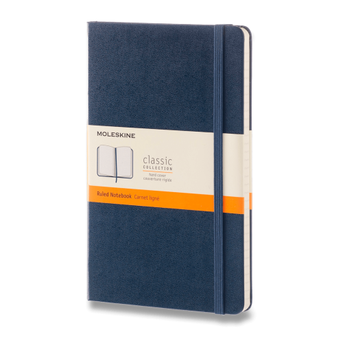 The Moleskine Classic Notebooks is a reliable travel companion, perfect for calculations, thoughts and passing notes. This sapphire blue hard cover notebook has rounded corners, acid free paper, a bookmark, an elastic closure and an expandable inner pocket. Specifications: - Layout: Ruled Paper- Dimensions: 5 x 8-1/4- Hard Cover with elastic closure and bookmark ribbon.- Color: Sapphire Blue- Pages: 240- Expandable Inner-Pocket- Paper Weight: 70 gsm/47 lb.; FSC Certified Paper; Acid-Free (pH Neutral)