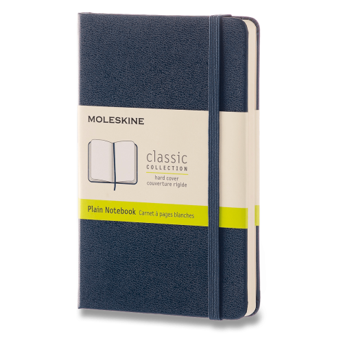 Moleskine brings more color to its notebooks. This Sapphire Blue version of the classic Plain Pocket Notebook is perfect for writings, thoughts and passing notes. The color-coded bands reveal the notebook's layout. The back of the paper banderole can be saved for later use. The ribbon, bookmark and expandable inner pocket match the cover color. Specifications: - Layout: Plain Paper- Dimensions: 3-1/2 x 5-1/2- Hard Cover with elastic closure and bookmark ribbon.- Color: Sapphire Blue- Pages: 192- Expandable Inner-Pocket- Paper Weight: 70 gsm/47 lb.; FSC Certified Paper; Acid-Free (pH Neutral)