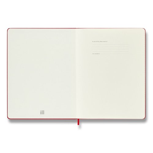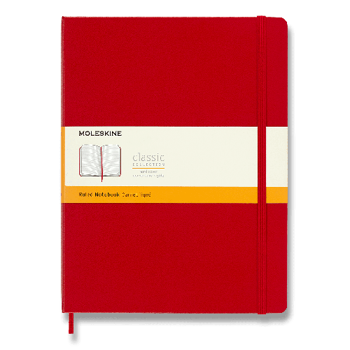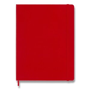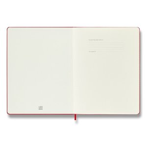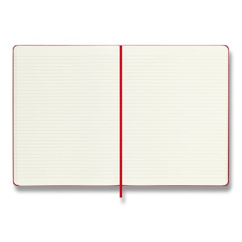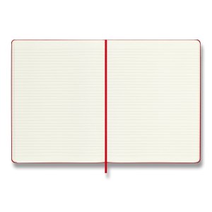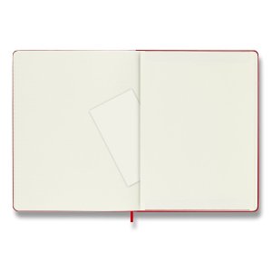 Zápisník s pevnou, ve hřbetu šitou vazbou v kartonových deskách, obepnutý pružnou páskou proti samovolnému otevírání. Zápisník je vybaven pořadačem poznámek, který je vyroben z tkaniny a kartonu, textilní záložkou a letákem s historií MOLESKINE. Gramáž papíru 70 g/m2, neobsahuje kyseliny. Rozměr: 19 x 25 cm, 96 listů, linkovaný