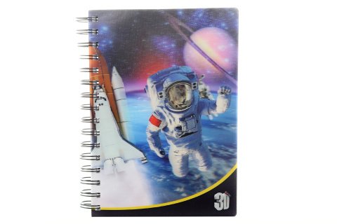 Zápisník s 3D efektem s motivem kosmonauta. V zápisníku je celkem 100 listů, z nichž je 50 linkovaných a 50 nelinkovaných. Formát A5. Výrobek není hračka.
