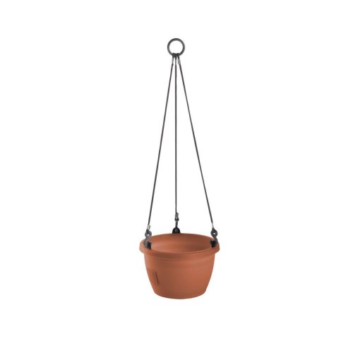 Plastová samozavlažovací žardinka v jednoduchém designu s matným povrchem. Má okno na zalévání, k odtoku přebytečné vody při dešti a k přístupu vzduchu ke kořenům. Součástí je provázkový závěs. Délka závěsu: 48 cm. Průměr: 30 cm, výška: 20 cm, hloubka: 30 cm.
