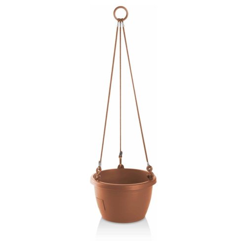 Plastová samozavlažovací žardinka v jednoduchém designu s matným povrchem. Má okno na zalévání, k odtoku přebytečné vody při dešti a k přístupu vzduchu ke kořenům. Součástí je provázkový závěs. Délka závěsu: 48 cm. Průměr: 20 cm, výška: 13 cm, hloubka: 20 cm.