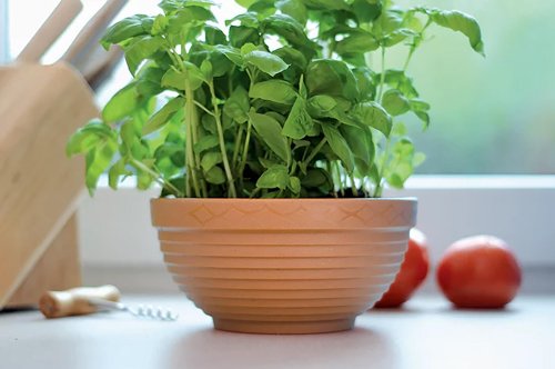 Polypropylenová, vysoce odolná matná žardinka v barvě terakoty o průměru 15 cm a výšce 8 cm. Žardinka je pruhovaná. Pruhy jsou cca 0,5cm široké a jsou za sebou kónicky naskládané. Horní pruh je širší, vyplněn po obvodu kosočtverci navazujícími za sebou. Použivá se zejména v exteriéru na výsadbu rostlin.