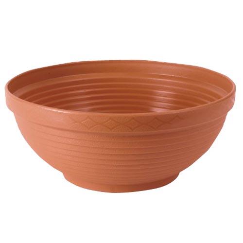 Polypropylenová, vysoce odolná matná žardinka v barvě terakoty o průměru 40 cm a výšce 17 cm. Žardinka je pruhovaná. Pruhy jsou cca 0,5cm široké a jsou za sebou kónicky naskládané. Horní pruh je širší, vyplněn po obvodu kosočtverci navazujícími za sebou. Použivá se zejména v exteriéru na výsadbu rostlin.