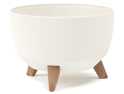 Matná plastová žardinka se vzhledem připomínajícím svetr na třech nožičkách v dekoru dřeva. Jedná se o set, který obsahuje: žardinku, nohy, vložku a ventil. Žardinka je vhodná do interiéru, na balkóny a terasy. Je vyrobena z recyklovaného plastu. Barva: béžová. Průměr: 29 cm, výška: 18 cm.