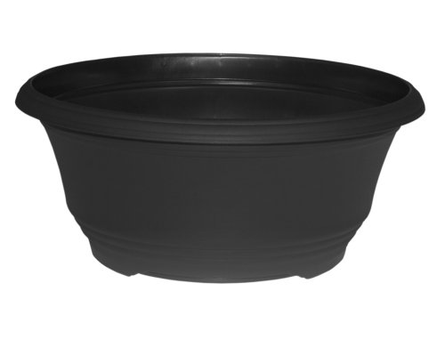 Plastová žardinka v barvě terakoty s vlisovanými třemi proužky v horní i v dolní části se zahnutým horním okrajem směrem ven. Vhodná k použití v interiéru i v exteriéru na výsadbu rostlin a pro floristiku. Rozměry: průměr 30 cm s výška 12 cm. Barva: černá.