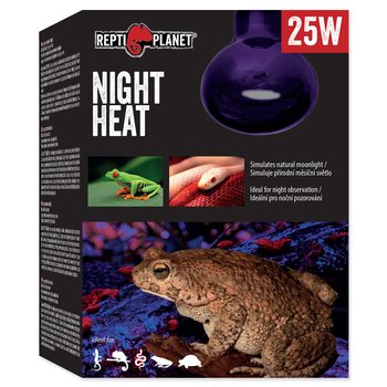 Žárovka Repti Planet Night Heat simuluje přírodní měsíční světlo a je ideální v kombinaci s denními výhřevnými žárovkami (např. Repti Planet Infrared Heat, Daylight Basking Spot, Daylight Frosted, Daylight Neodymium nebo Far Infrared Heat). Intenzita tepelného záření je nižší, což je ideální z důvodu přirozeného poklesu nočních teplot v přírodě. Zbarvení je dosaženo prostřednictvím modré barvy skla.