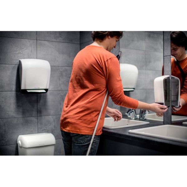 Dávkovač je pro cartridgové tekuté nebo pěnové mýdlo Katrin 1 l (např.348.401)