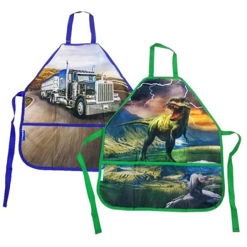 Dětská malířská/řemeslná zástěra s potiskem 2 chlapeckých motivů (nelze vybrat) Velká přední kapsa se 3 kapsami na malířské a kutilské potřeby Zapínání na suchý zip u krku a popruhy na zádech Včetně …