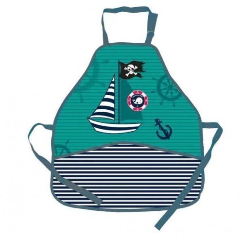 Zástěrka na výtvarnou výchovu se navléká nastavitelným popruhem přes hlavu a zaváže se kolem těla pomocí šňůrek. Je vyrobena z omyvatelného polyesterového materiálu, který se lehce udržuje. Na přední straně jsou 2 kapsy na výtvarné pomůcky.Hlavní část zástěrky je potištěna obrázky ve školních designech, ladících ke školní kolekci. Rozměr: 44 x 50 cm