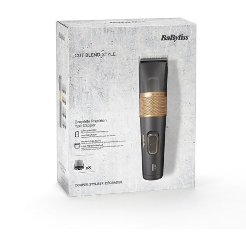 Výkonný zastřihovač vlasů v elegantním provedení, vhodný pro bezdrátové i síťové použití. Díky odolným grafitovým čepelím a až 160minutové výdrži baterie umožňuje precizní úpravu vlasů bez omezení. Nastavení délky je snadné díky otočnému prstenci přímo na těle zastřihovače. Odnímatelné a omyvatelné čepele zajišťují snadnou údržbu. Součástí balení je pevné pouzdro, nástavce, olejíček a čisticí kartáček.
