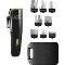 Zastřihovač vlasů je vybaven technologií Direct Drive, která umožňuje okamžité napájení ze sítě i během nabíjení, takže můžete přístroj používat, i když je baterie zcela vybitá. Funguje jak na akumulátor, tak přímo ze zásuvky. Jeho výkonný a zároveň velmi tichý profesionální motor si bez problémů poradí i s hustými vlasy, vousy nebo chloupky. Kvalitní břity s titanovým povrchem zajišťují přesný a rovnoměrný střih. V balení najdete osm výměnných nástavců pro úpravu délky od 3 do 25 mm, šířka čepele je 46 mm. Ergonomická rukojeť s chromovaným povrchem skvěle padne do ruky a neklouže. Zastřihovač má výdrž až 60 minut na jedno nabití, přičemž se zcela nabije již za 2 hodiny, což je až čtyřikrát rychlejší než u běžných modelů. Praktický přepínač ON/OFF, grafický indikátor délky střihu i LED kontrolka stavu nabití usnadňují používání. Zastřihovač je dodáván s bohatým příslušenstvím včetně čisticího kartáčku, oleje, hřebene, všech výškových nástavců a cestovního plastového pouzdra. Délka napájecího kabelu je 195 cm. Přístroj váží pouze 120 g a jeho rozměry jsou 174 × 52 × 32 mm.
