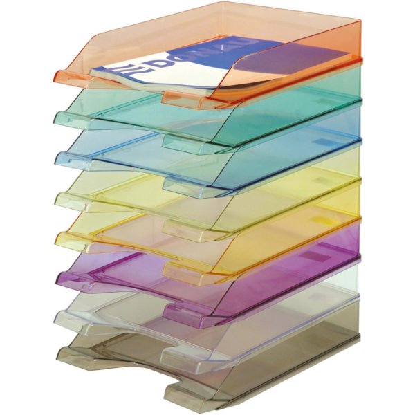 Pro dokumenty do formátu A4 Plné zásuvky dodávané ve dvou provedeních - v transparentních barvách a plnobarevné Rozměry: 25,0 x 6,0 x 34,5 cm (š x v x h)