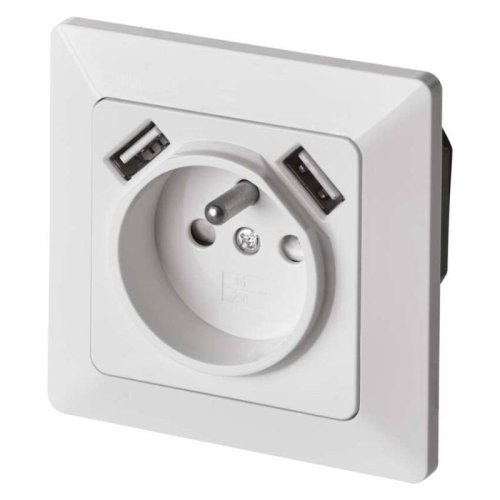 zásuvka jednonásobná s ochranným kolíkem a USB výstupem 2,1 A max. design: FRENCH typ: 250 V~/16 A max. barva: bílá (lesk) způsob montáže: do krabice krytí: IP20