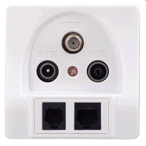 Účastnická koncová zásuvka TV/R/SAT/RJ-45/RJ-11 patří do série, která integruje anténní systémy FM/TV/SAT s telefonní sítí a LAN.