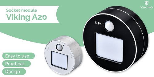Zásuvkový modul Viking A20 je vybaven LED světlem s pohybovým senzorem a je k dispozici ve dvou barevných variantách.