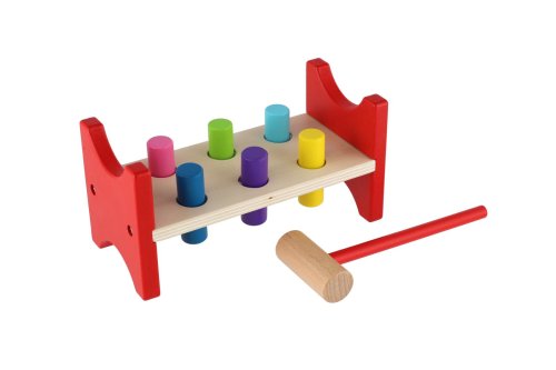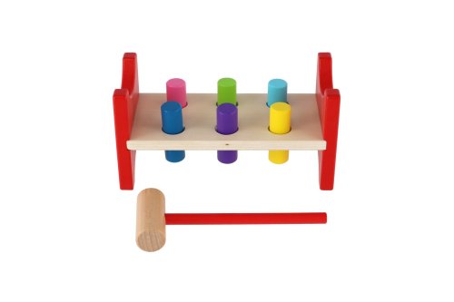 Klasická dřevěná zatloukačka s barevnými kolíčky a pevným kladívkem přináší dětem spoustu zábavy a zároveň rozvíjí jejich motoriku, koordinaci ruky a oka i sílu úchopu. Skvělá volba pro první „pracovní“ hru malých řemeslníků. Rozměr balení: 20 × 10 × 9,5 cm Vhodné pro děti od 18 měsíců