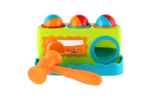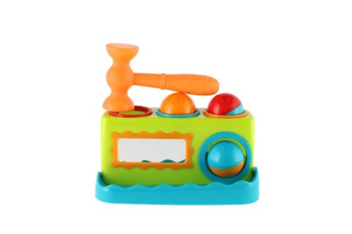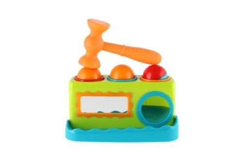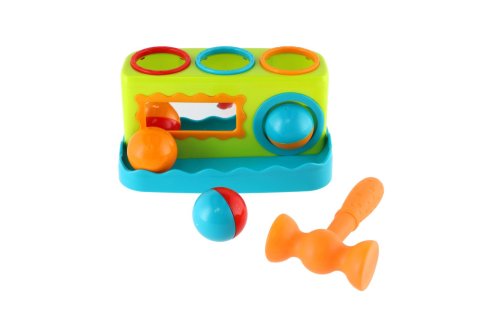 Zatloukačka se třemi zatloukacími balonky a kladívkem. Na přední straně zatloukačky je zrcátko. Rozměr: 21 cm Rozměr krabice: 28 x 16,5 x 16 cm Vhodná od 12 měsíců