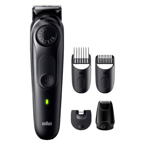 Se zastřihovačem vousů a vlasů Braun Series 5 dosáhnete doma výsledků jako z barber shopu. Přesné v každém tahu s výjimečně ostrými břity, které zajišťují rovnoměrné oholení všech vousů. Přesný otočný ukazatel se 40 nastaveními délky. Nabízí 100 minut bezdrátového provozu.