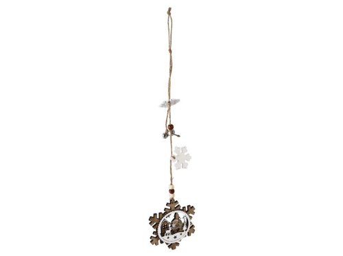 Závěs dřevo 110x450mm vločka, přírodní s glitrem, bílá